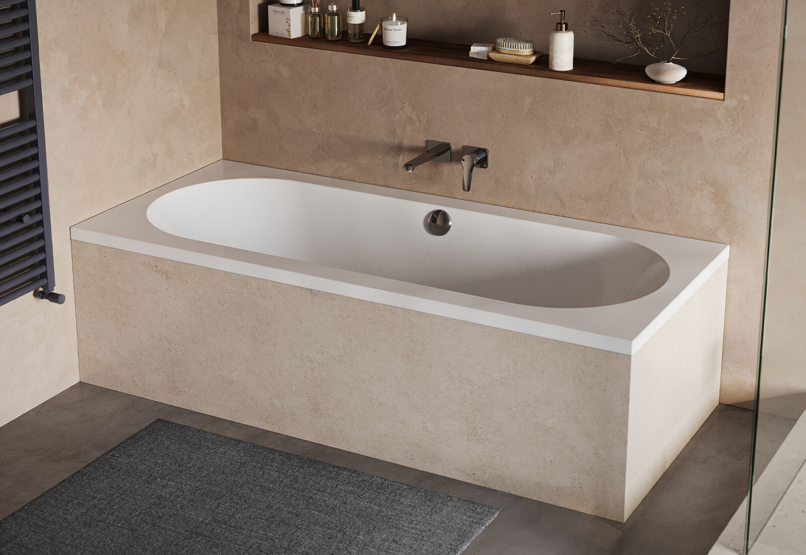 The Rivie Bath boasts a curved, softer internal shape, delivering a more relaxed and inviting look.