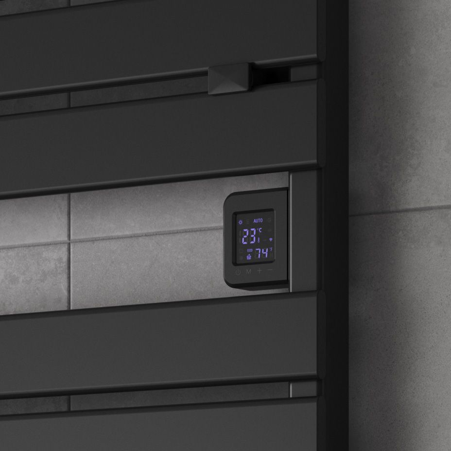 The Gia Dry Electric Heated Towel Rail offers lightweight aluminum construction with flat horizontal sections, exceptional heat output, and smart technology. Featuring an LCD display, programmable timer, temperature control (7-30°C), anti-scald function, and WiFi compatibility with Alexa and Google Home, it’s the ultimate blend of style, convenience, and safety.